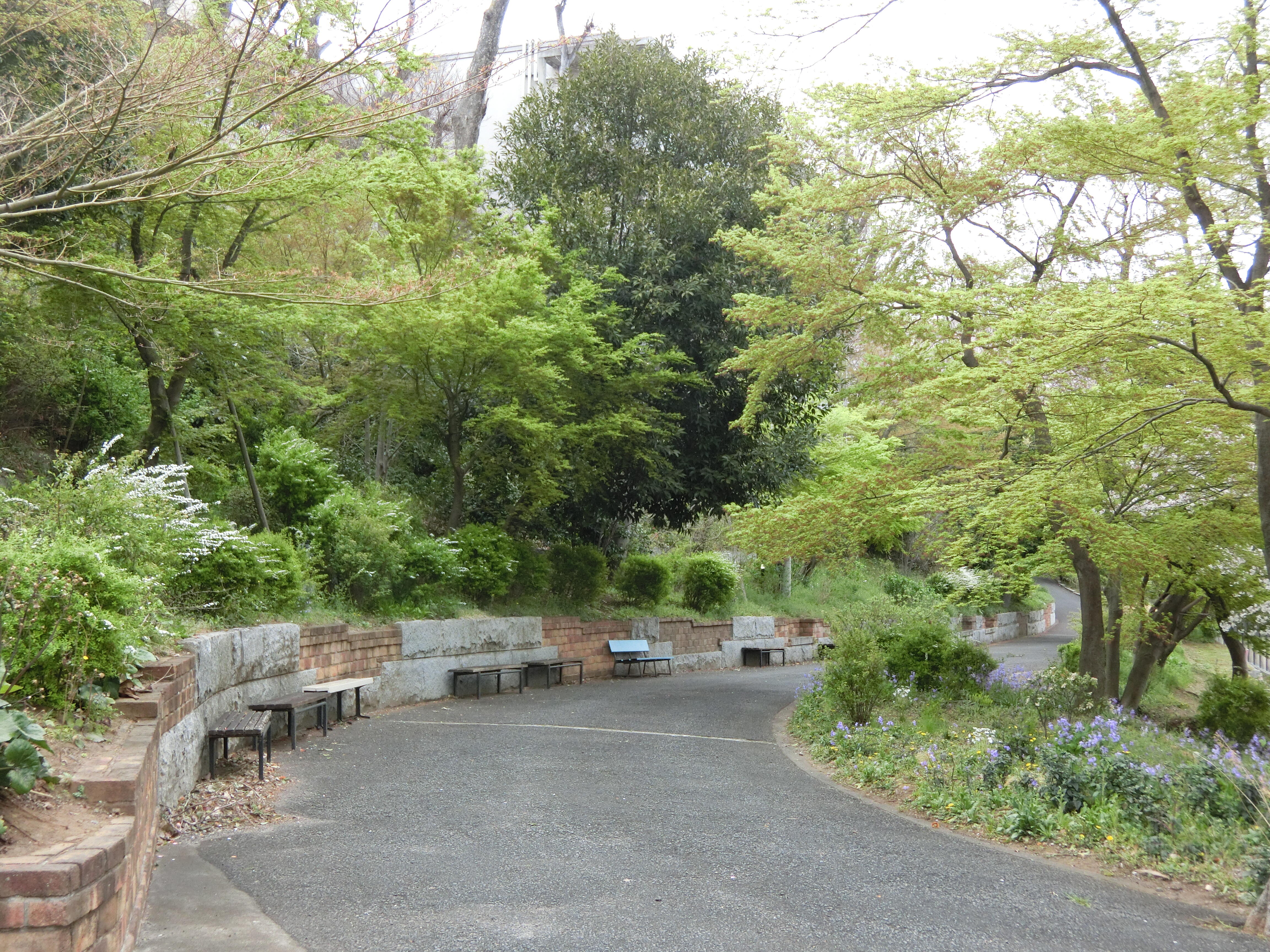 前庭では赤いツツジが早くも咲き始めました。チューリップと赤いキンギョソウもきれいです。シダの芽もおもしろい形です。ユキヤナギも白い花を咲かせています。ほんのりとよい香がします。
