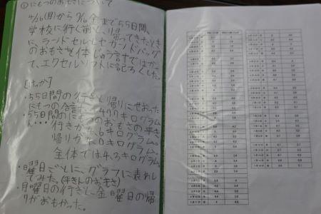 3年生の研究では、ランドセルの重さを毎日計測し、軽くするための工夫を考えているものがありました。他の国ではどのようにしているのかというところまで研究していて、学校としてももっと軽くするために工夫していくことの必要性を考えさせられました。