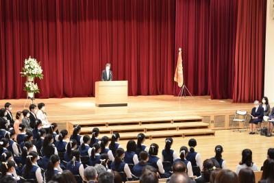 校長Sr.大山は式辞の中で、「2」「3.5」「1」と3つの数字を挙げて、世界を動かし、変容をもたらす数字は意外と小さく実現可能性があることを示されました。気候変動の危機を脱するためには2%のGDPの使い道を見直すことを提言した歴史学者、成功した非暴力の市民活動に参加していたのは人口の3.5%であることを見出したハーバード大学の政治学教授、チュニジアの政府を動かした一人のシンガーを紹介しました。不安にとらわれて小さな希望を見逃すことのないように、各自の場で、主体的に、責任をもって判断する一個人として、希望をもたらす1となってほしいと締めくくられました。